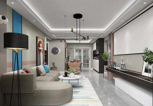 客廳的黑白灰設(shè)計,很高級,如黑夜般深邃,如星空般神秘。藍(lán)、粉跳色的搭配,讓空間增些許活力,提升空間的深度,大氣不拘,同時也很有現(xiàn)代都市的時尚感。