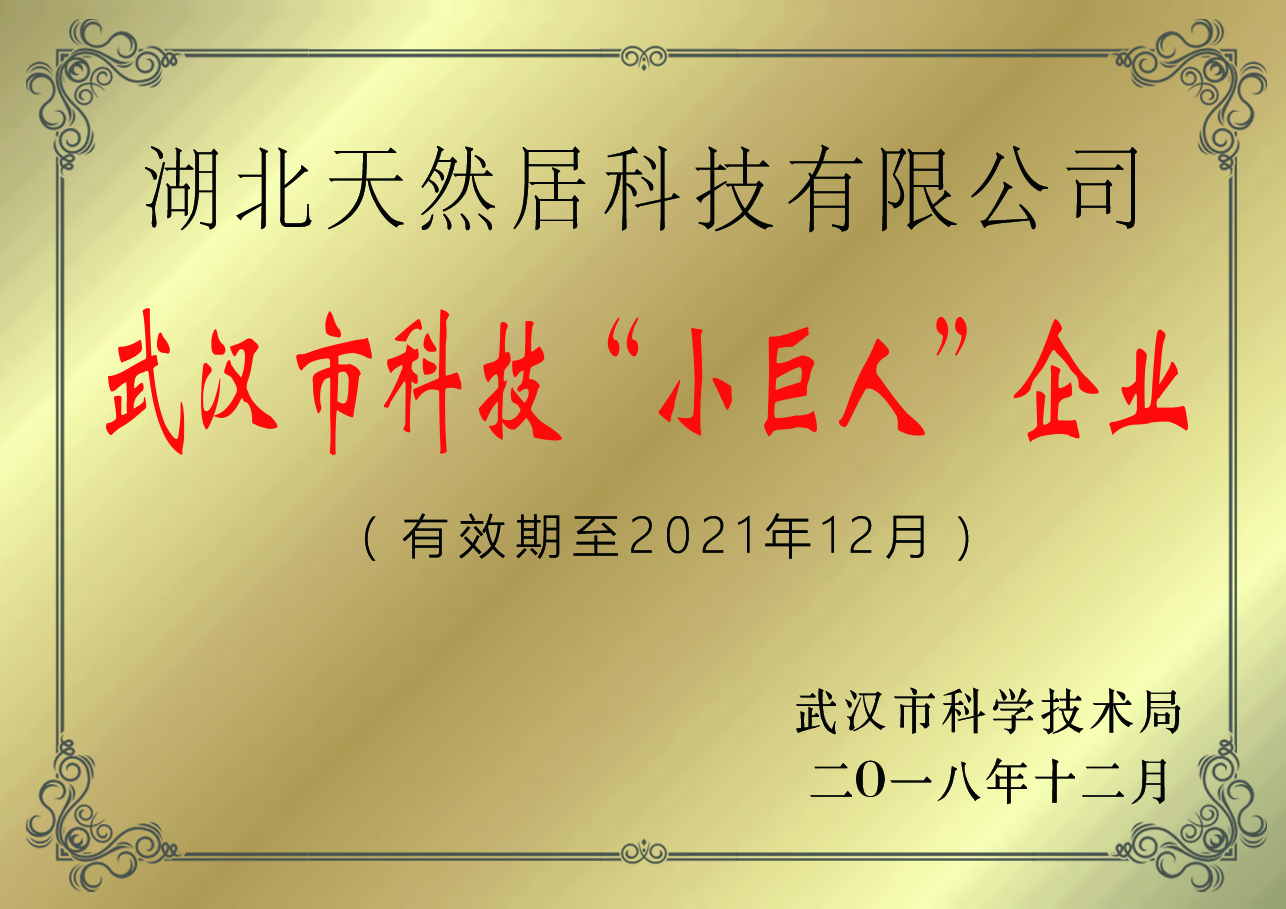 熱烈祝賀湖北天然居科技有限公司榮獲武漢市科技“小巨人”企業(yè)。榮獲此稱號(hào)也標(biāo)志著武漢市科技局對(duì)湖北天然居科技有限公司作為高新技術(shù)企業(yè)的高度認(rèn)可。
