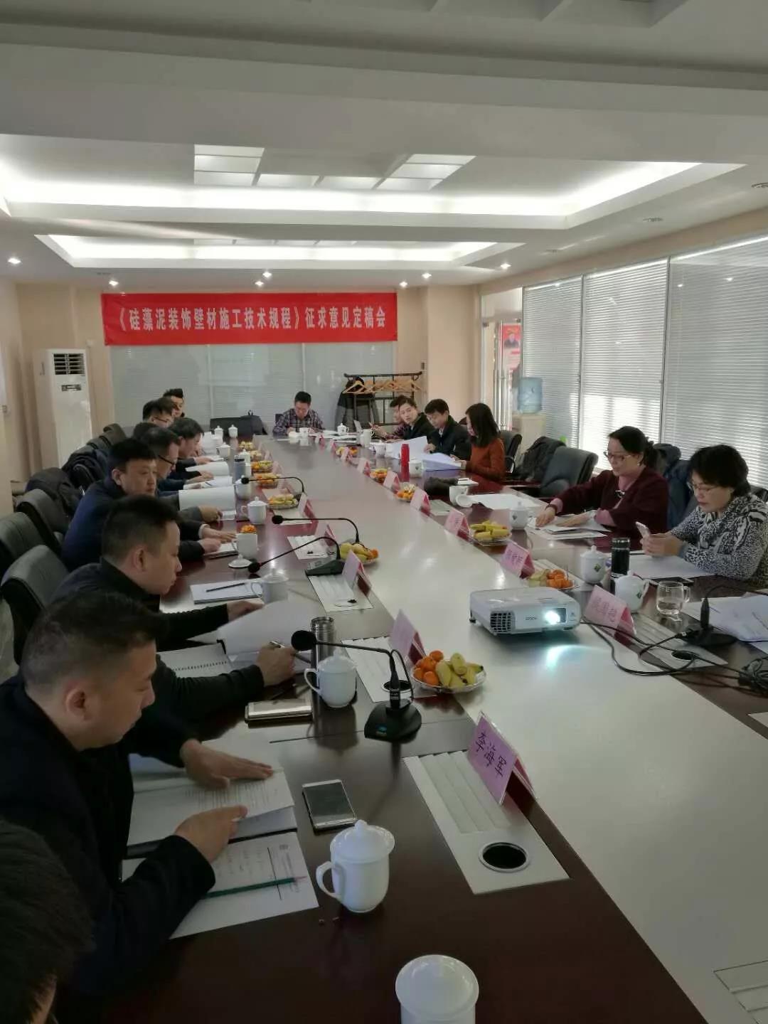 2018年1月9日,由中國建筑材料聯(lián)合會生態(tài)環(huán)境建材分會提出,中裝協(xié)涂料分會共同申請立項,各硅藻泥企業(yè)共同參與的《硅藻泥裝飾壁材施工技術(shù)規(guī)程》標(biāo)準(zhǔn)征求意見定稿會于北京朝陽區(qū)管莊東里1號中國建材研究總院綠建樓一層會議室圓滿舉行。