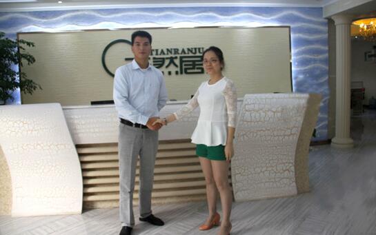 圖片資料:四川達州獨家代理商李及智女士與天然居市場部經理胡總的溫馨留影