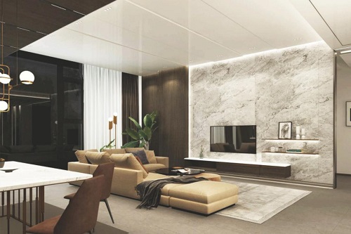 在用鋁蜂窩大板裝飾的現代客廳里,就非常適合這樣的設計。整體的頂部設計延伸視野,讓狹小空間在視覺上顯得大氣不壓抑。