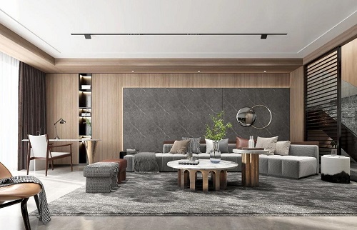 選擇黑、白、灰等中性色調,打造出高級而舒適的生活環境,天然居全鋁大板吊頂,簡約又不失品味,讓整體視覺統一感更強。
