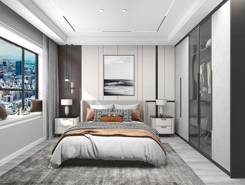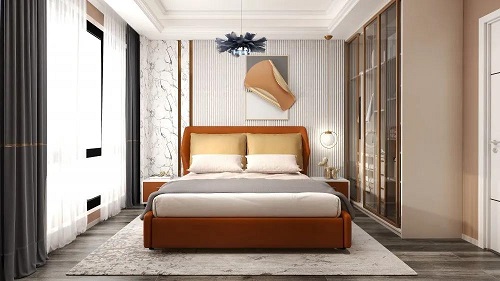 簡約的臥室設計,創造出一個悠然自得的居家環境,再煩躁的心也能安定下來。床頭背景墻格柵,無形延伸了視覺上的空間高度。